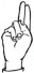 На ћирилици написано НИКОДИЈЕ БЛАГОЈЕВИЋ састоји се из 18 слова [?]. Исписано ћириличном једноручном азбуком за глувонеме: